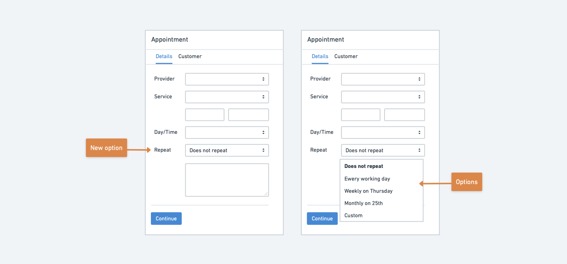 After conducting user research and receiving numerous requests, we identified the need to introduce a feature that allows users to book recurring appointments and charge clients in advance for these appointments.